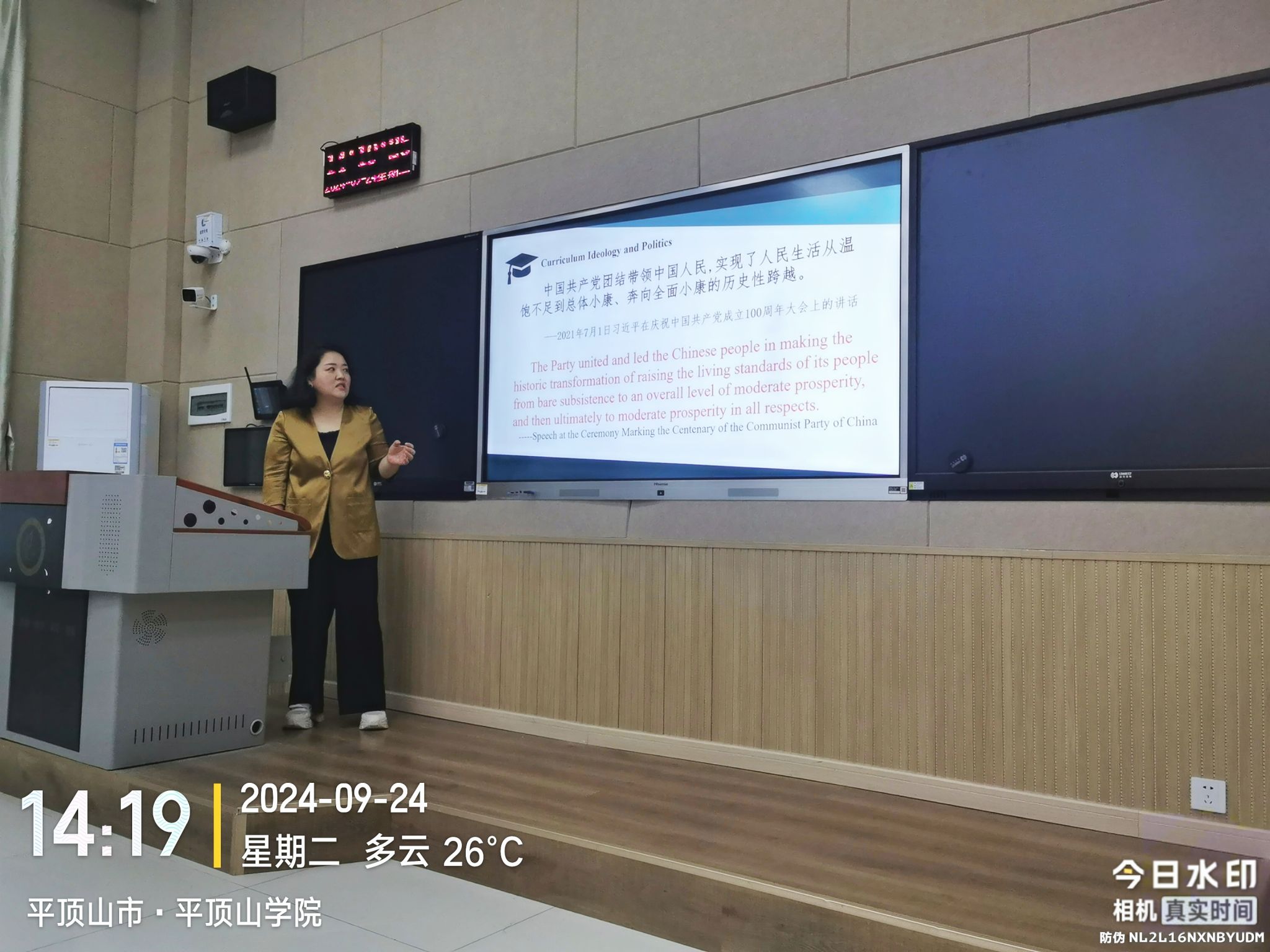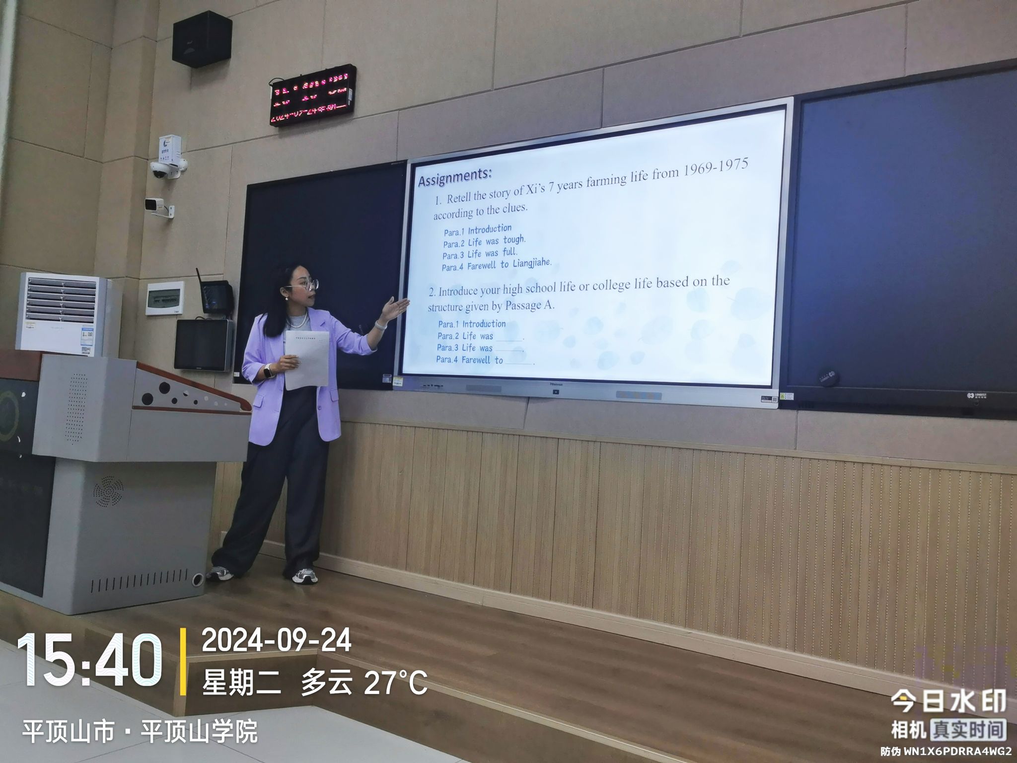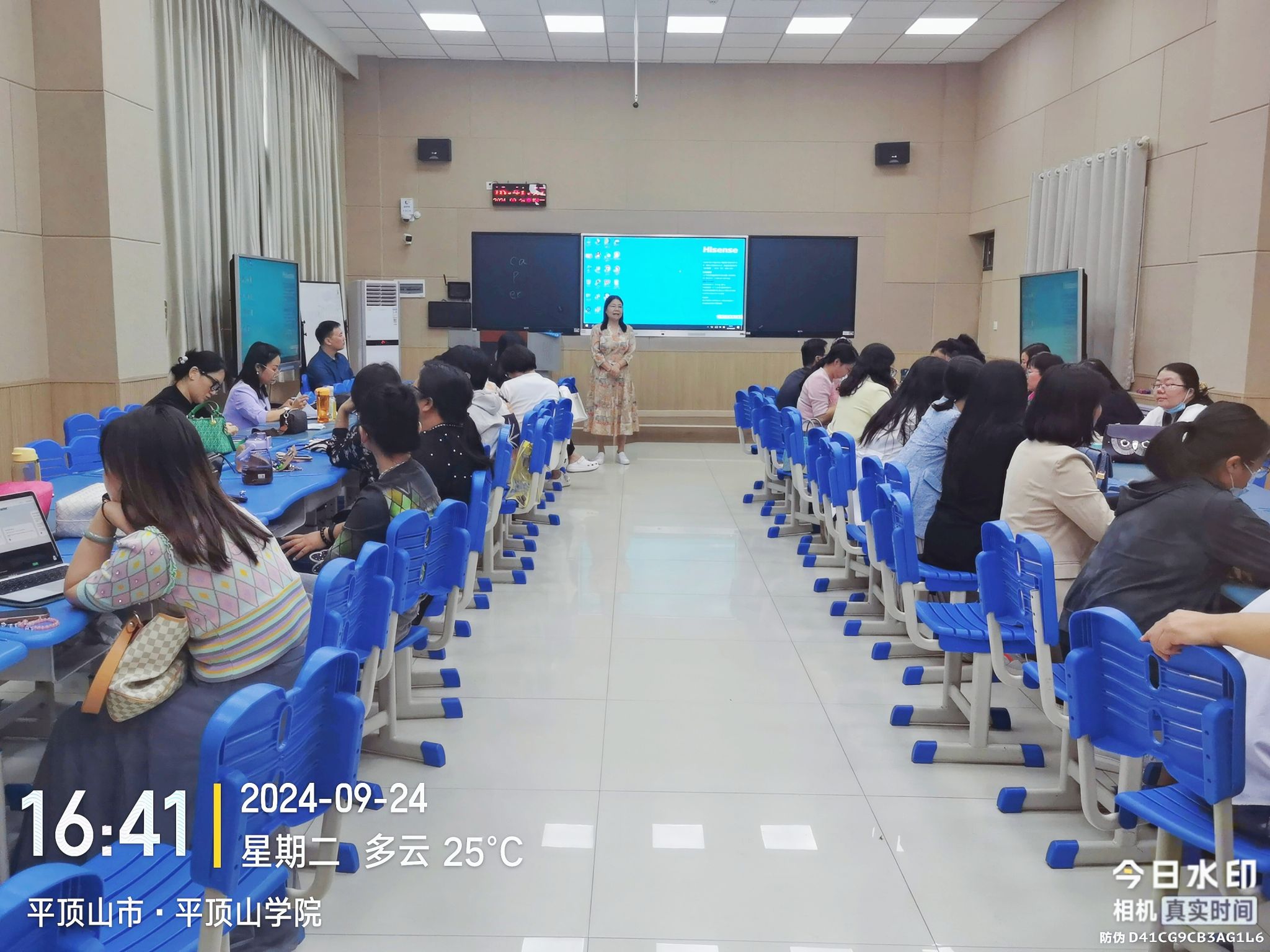 2024年9月24日下午,大学英语第一、第二教研室在图书馆L206教室成功举办《大学英语》公开示范课活动。此次活动旨在进一步提升大学英语教学质量,促进教师之间的教学经验交流,并展示优秀的教学成果。大学英语全体任课教师到场观摩学习,蒋领敏院长和丁超峰副院长参加此次活动,活动由姜慧老师主持。